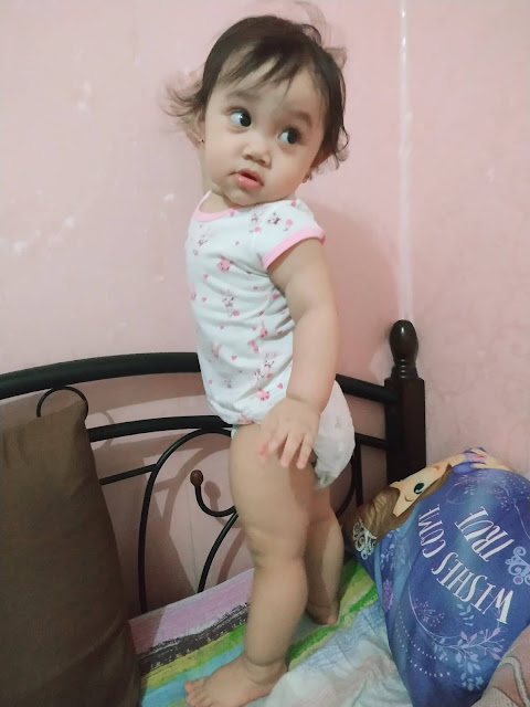 Sa tingin ko, kaya mabilis mapuno, hindi even yung distribution ng wiwi. Hindi namamaximize ang full capacity ng absorbent pad. Hindi nagagamit yung back part ng diaper. Pero in fairness, dry ang private parts ni baby. So tunay nga siyang excellent dry. Hindi rin nagkakarashes si baby sa diaper na ito.